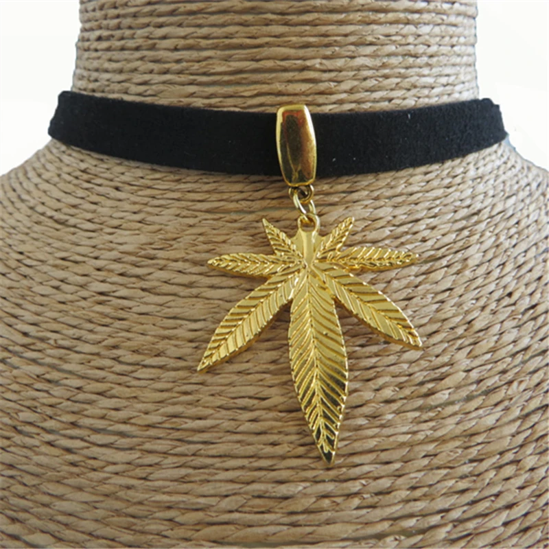 Dank Master Gold Weed Leaf Choker Necklace